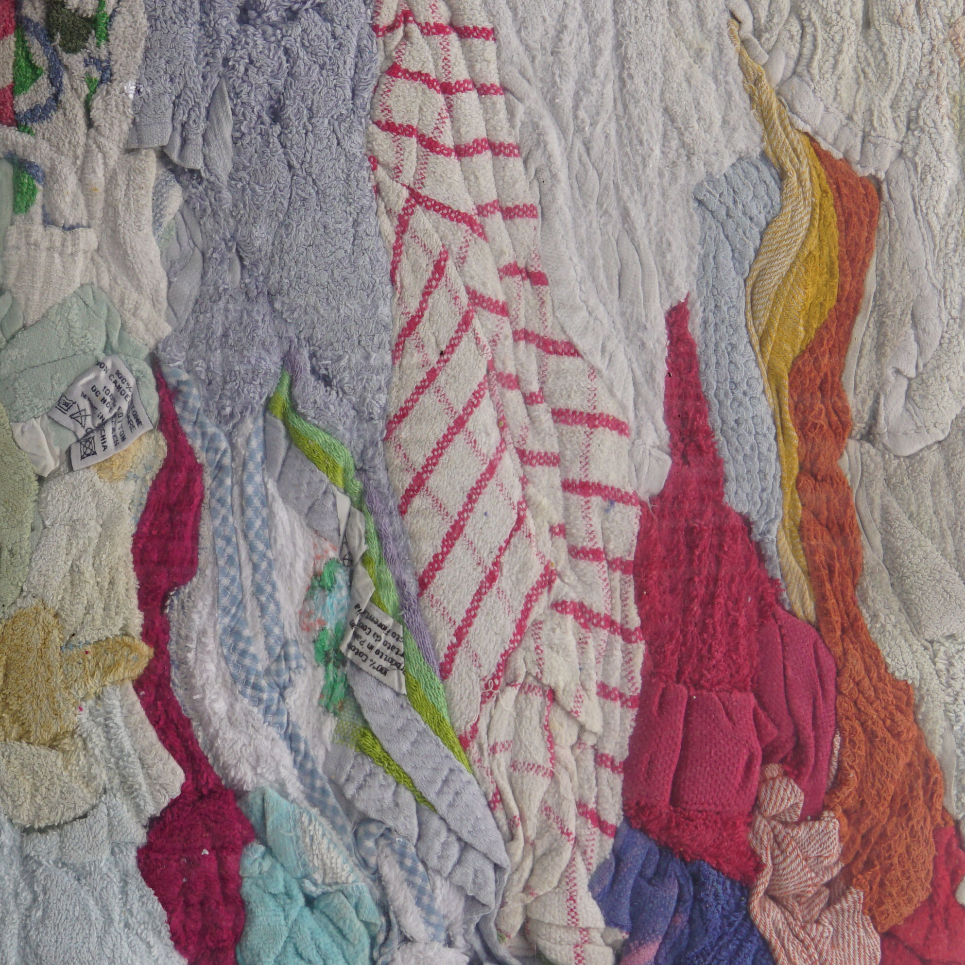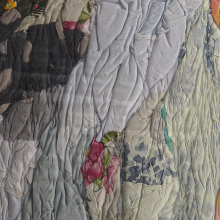 Подбрани нарязани и балирани цветни памучни материи, изчистени от щампи, ципове, копчета и драскащи елементи.